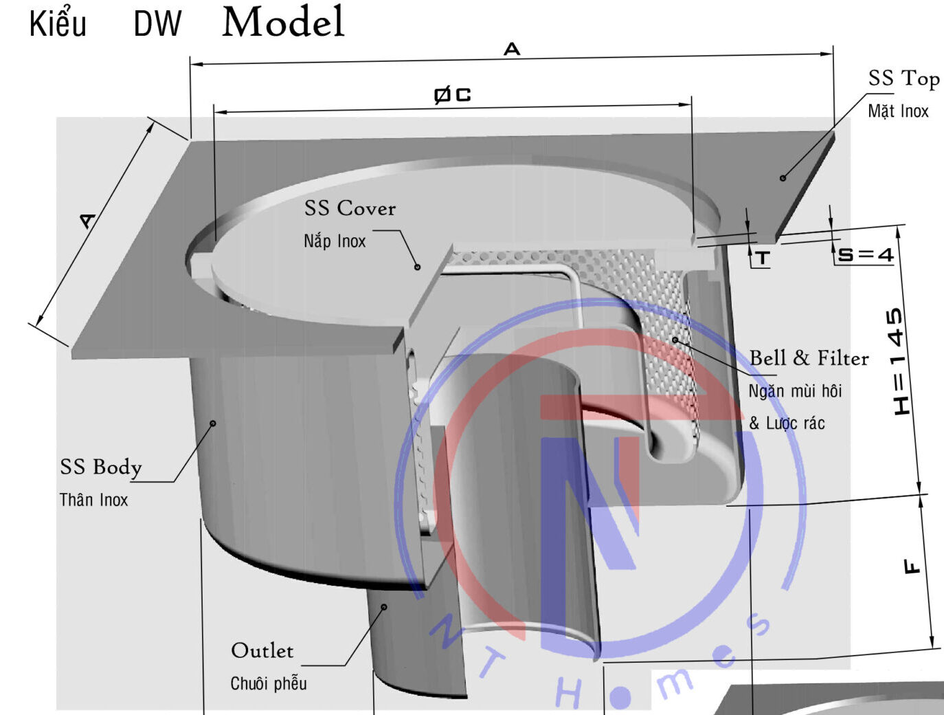 Phễu thu nước Thải Inox 304 Kiểu DW